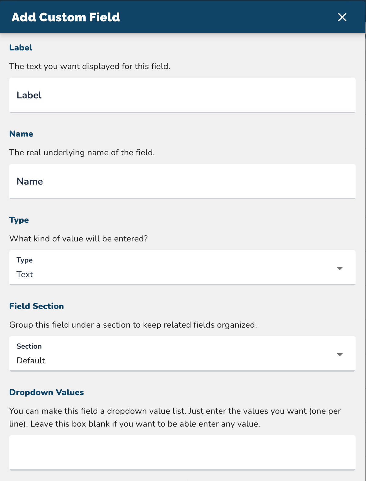NOTE: Leaving the dropdown field blank allows free text entry instead of restricting it to set options.