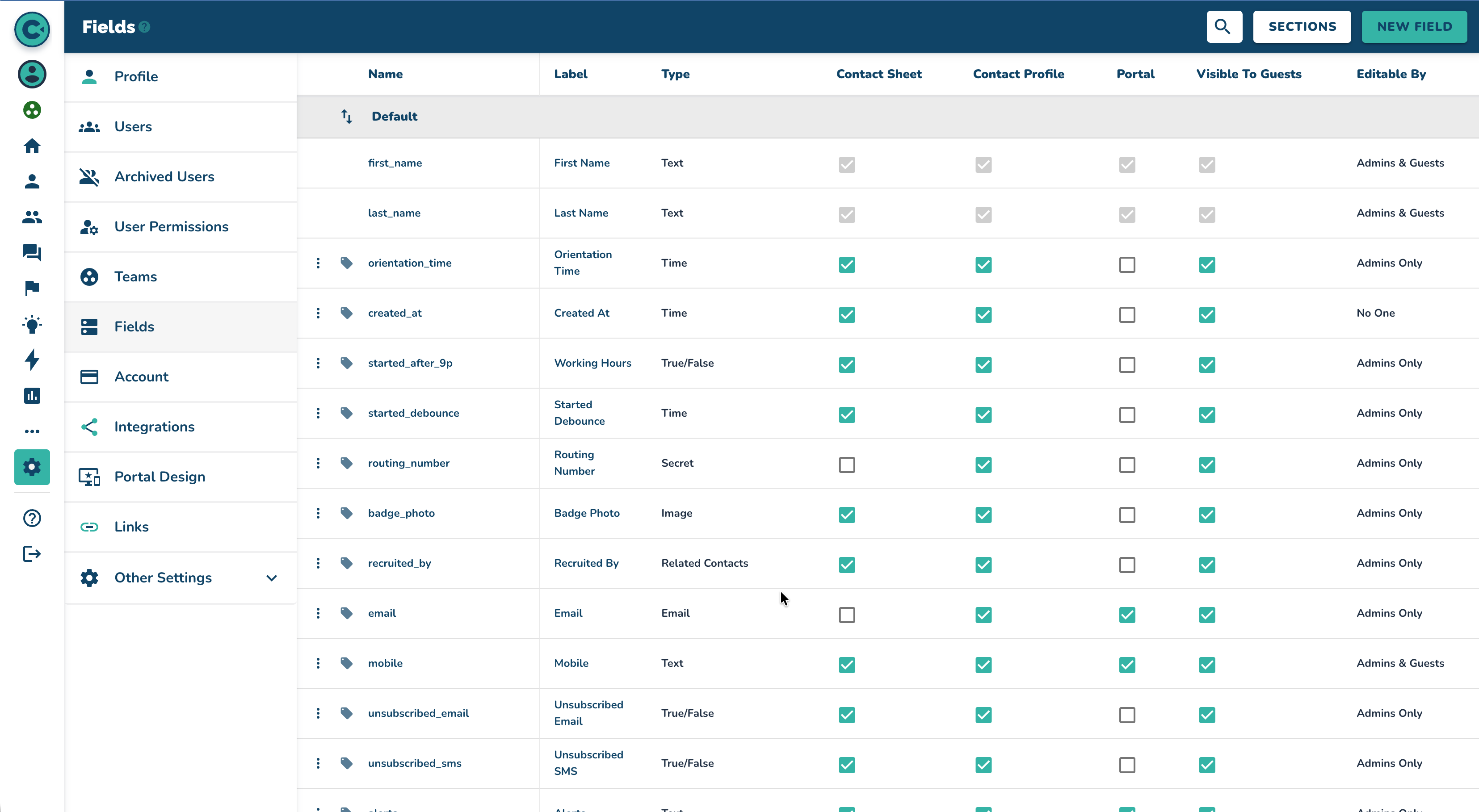 Contact Field Setup & Configuration