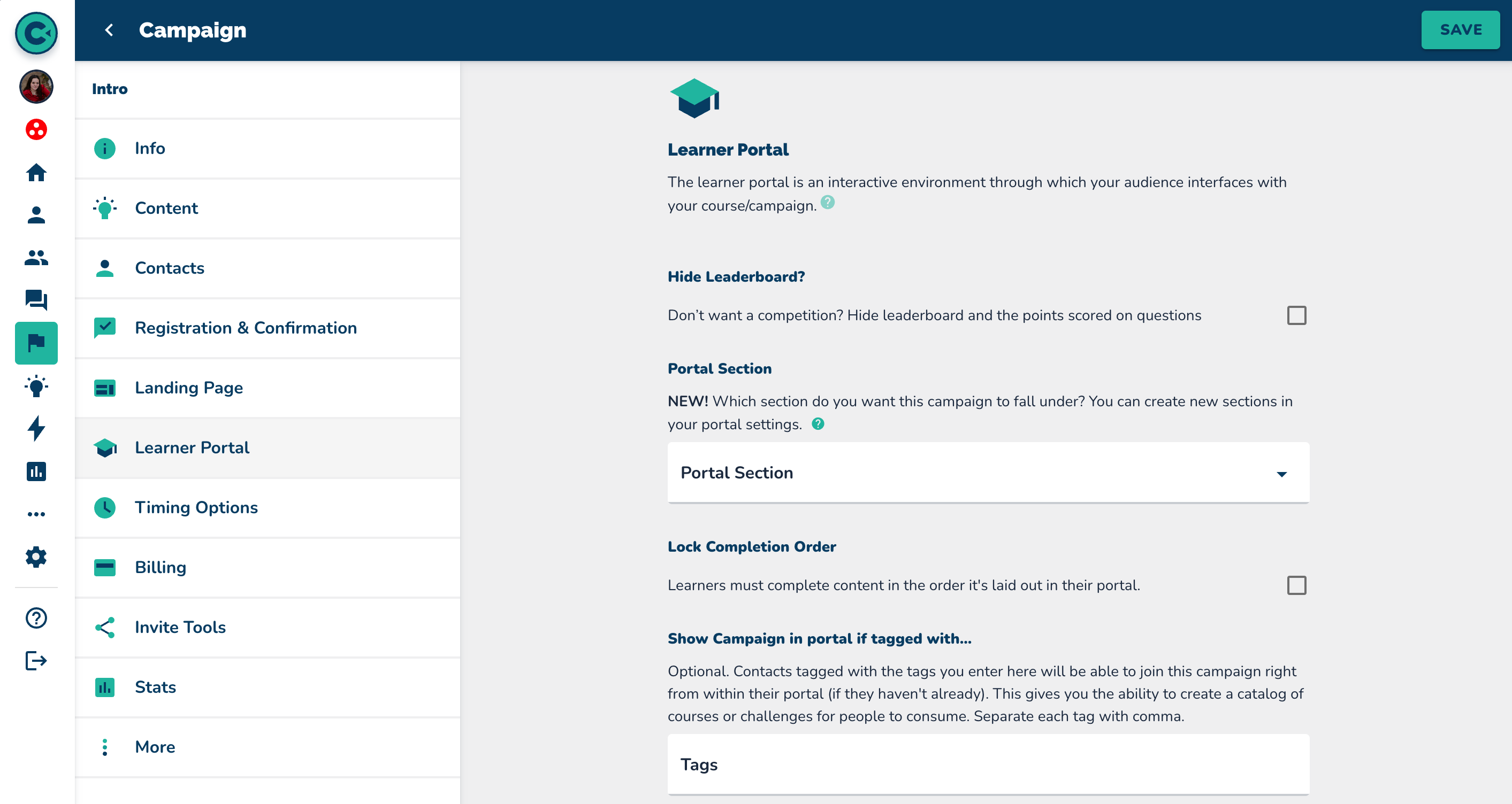 Campaigns Tab > Select a Campaign > Learner Portal tab
