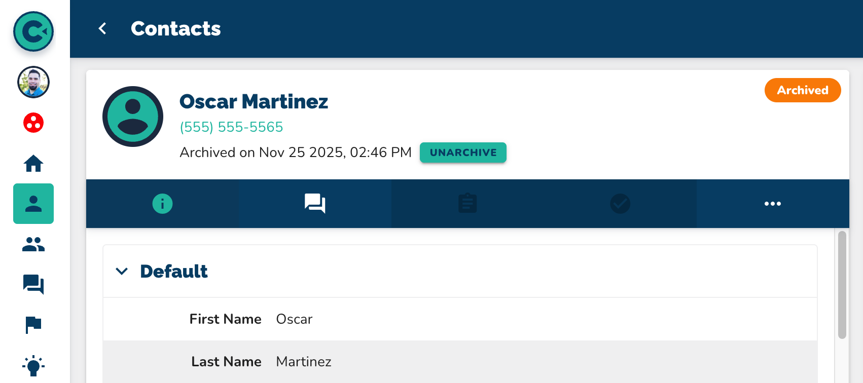 --Notice the orange button in the top right corner of their profile card that says "Archived".